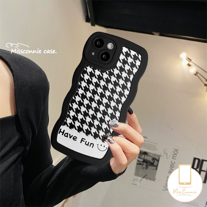 Ins Fashion Houndstooth Pattrtn Casing Ponsel Kompatibel Untuk iPhone 11 14 12 13 Pro Max XR 7 8 6 s Plus 14 Plus X XS Max SE 2020 Memiliki Casing Tepi Bergelombang Hitam Lembut yang Menyenangkan