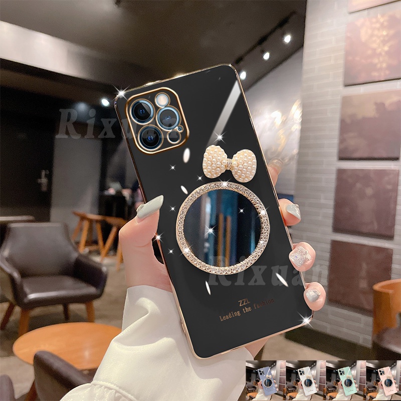 Detail Soft Case Karet Tahan Banting Aksen Pita Mutiara Untuk iPhone 14 Pro Max 14 13 12 11