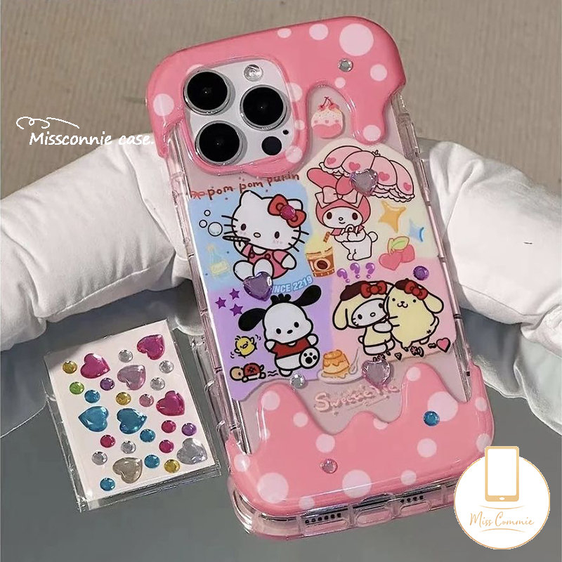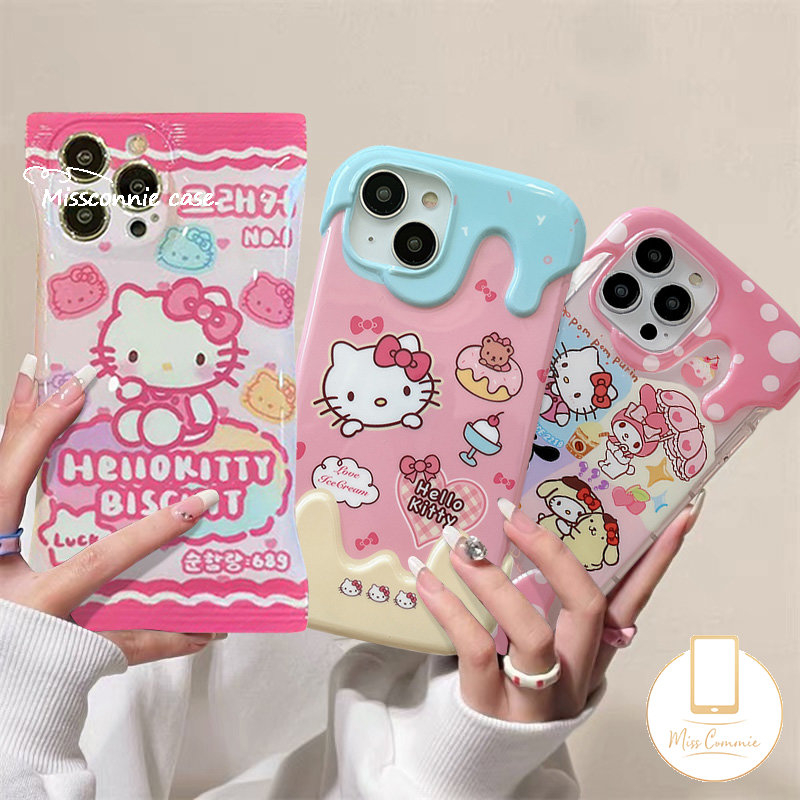 Kartun Hello Kitty Biskuit Tas Permen Kemasan Casing Ponsel Kompatibel untuk iPhone 11 XR 8 7 6 6s 14 Plus 12 14 13 Pro Max 11Pro Max X XS Max SE 2020 Pelindung Kamera Penutup Belakang Lembut