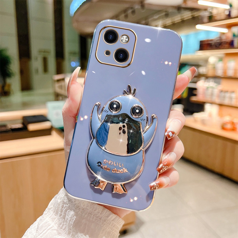 Casing Fashion Kompatibel untuk iPhone 14 Pro Max iPhone 14 iPhone13 iPhone12 iPhone11 Xs Casing Cute Duck Folding Stand Holder Mewah Plating Karet Penutup Ponsel Lembut