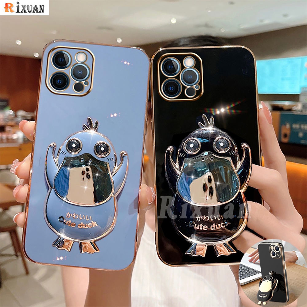 Casing Fashion Kompatibel untuk iPhone 6 6S Plus iPhone7 8Plus XS XS Max XR iPhone11 Pro Max SE 2020 Casing Dudukan Dudukan Bebek Lipat Lucu Pelapisan Mewah Karet Penutup Telepon Lembut