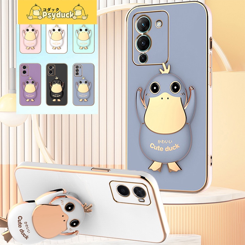 Infinix Hot12 Bermain Panas 12i Panas 10 Panas 11S NFC Panas 11 Bermain Panas 10S 10T Pintar 4 Kasus Lucu Bebek Lipat Dudukan Mewah Plating Karet Lembut Penutup Ponsel