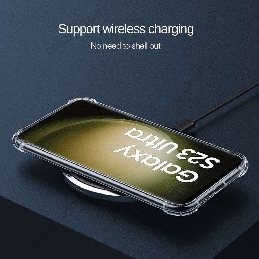 Spesifikasi product : Type: Soft Case Anti Crack Features: 360 Full protection Soft Phone Case Compatible Brand: Samsung Galaxy S23 Samsung S23 Plus Samsung S23 Ultra Design: Business, Plain Function: Full protection, shock proof + scratch resistant + Anti-skid + Dirt resistant + Shockproof case Type: Mobile phone cases fundas housing coque Material: Soft Silicone Craft: Micro-frost treatment, no fingerprint Color: Transparent