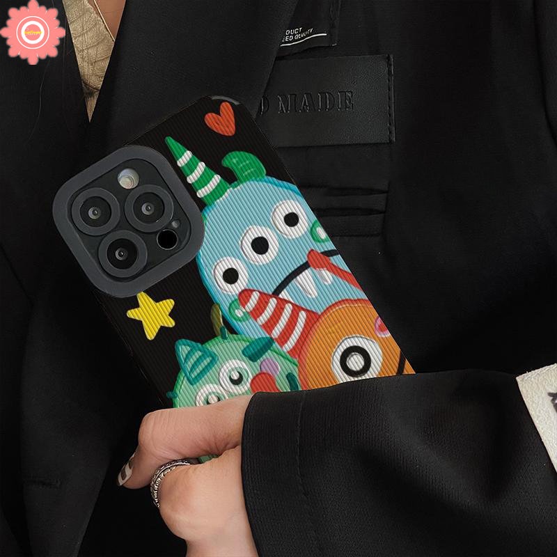 Soft Case Silikon Tekstur Kulit Motif Kartun Monster Kecil Untuk iPhone 7 8 Plus 11 14 13 12 Pro Max XR X XS Max 13 14 Pro Max
