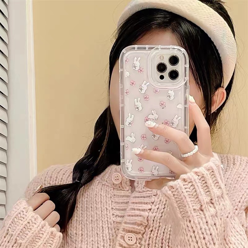 Detail Soft Case Silikon TPU Transparan Motif Bunga Kelinci Untuk IPhone 14 12 13 Pro Max 11 XS XR X 8 7 6S Plus