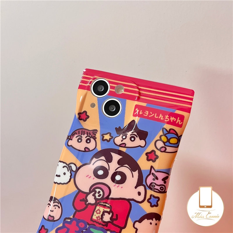 Casing Kompatibel untuk iPhone 11 12 13 14 Pro Max 8 7 6 6s Plus XR X XS Max 14 Plus SE 2020 Kemasan Tas Permen Kreatif Kartun Lucu Crayon Shinchan TPU Penutup Telepon Pelindung Lembut