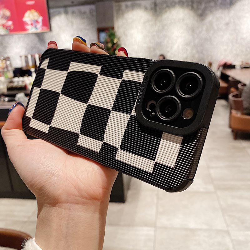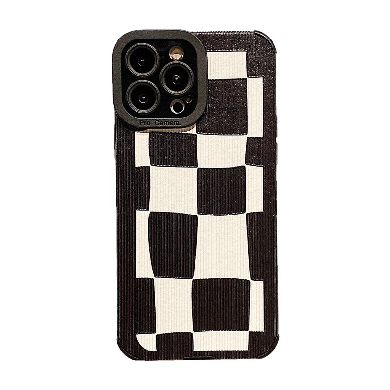 Handphone & Aksesoris > Casing & Skin > Casing & Skin Handphone > Soft sheepskin Leather Case IPhone 6S 7 8 Plus SE 2020 X XR XS Max 11 12 13 14 Pro Max 14 Plus Camera Protect for Girl women Black White lattice