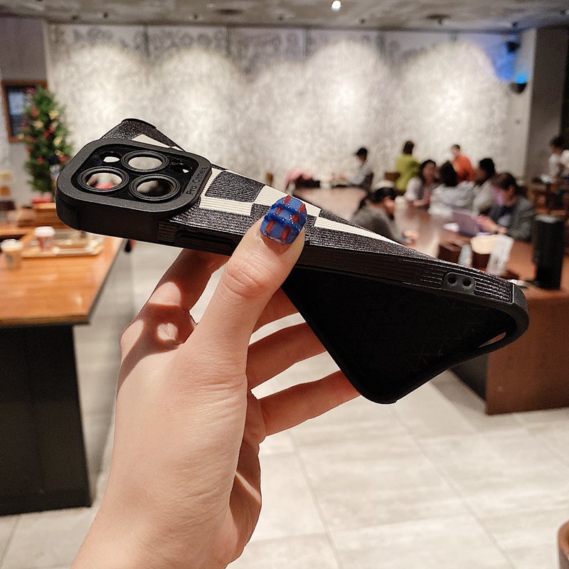 Detail Soft sheepskin Leather Case IPhone 6S 7 8 Plus SE 2020 X XR XS Max 11 12 13 14 Pro Max 14 Plus Camera Protect for Girl women Black White lattice