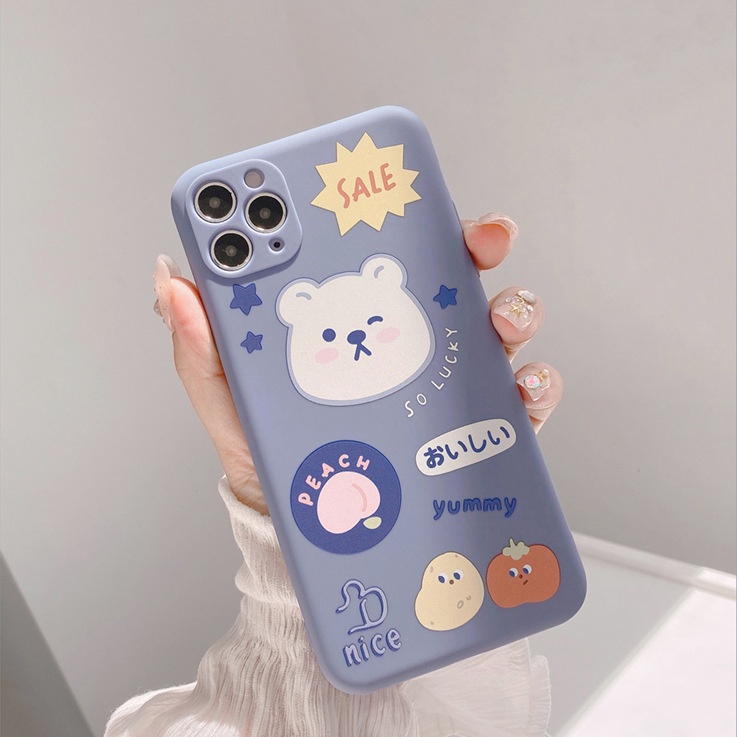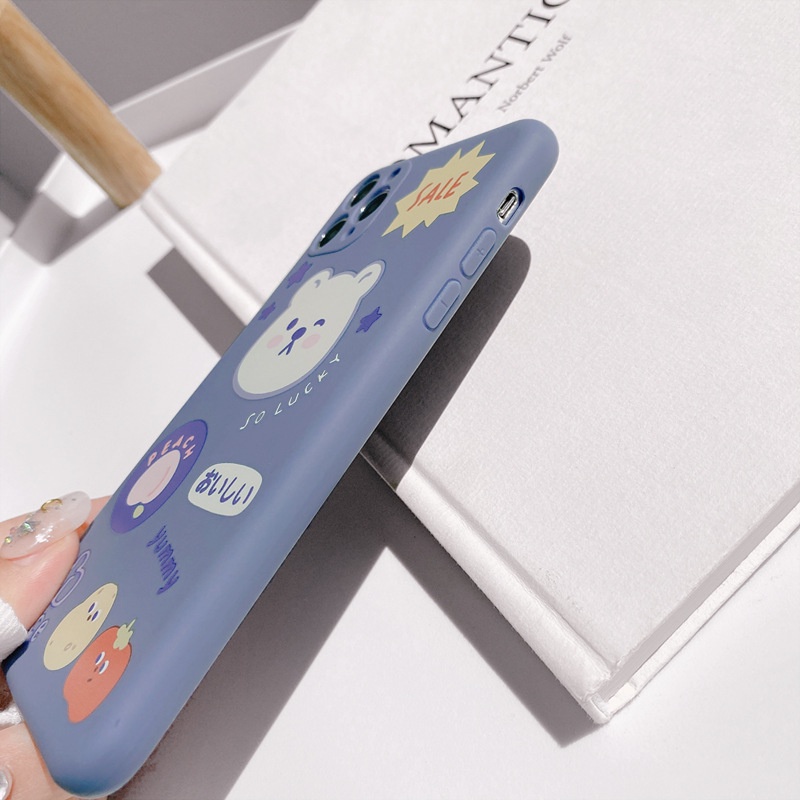Handphone & Aksesoris > Casing & Skin > Casing & Skin Handphone > Soft Silicone Matte Case for iPhone 7 8 14 Plus 7+ 8+ X XR SE 2020 XS Max 11 12 13 Pro Max Lens Protect Cute Gray Bear Black