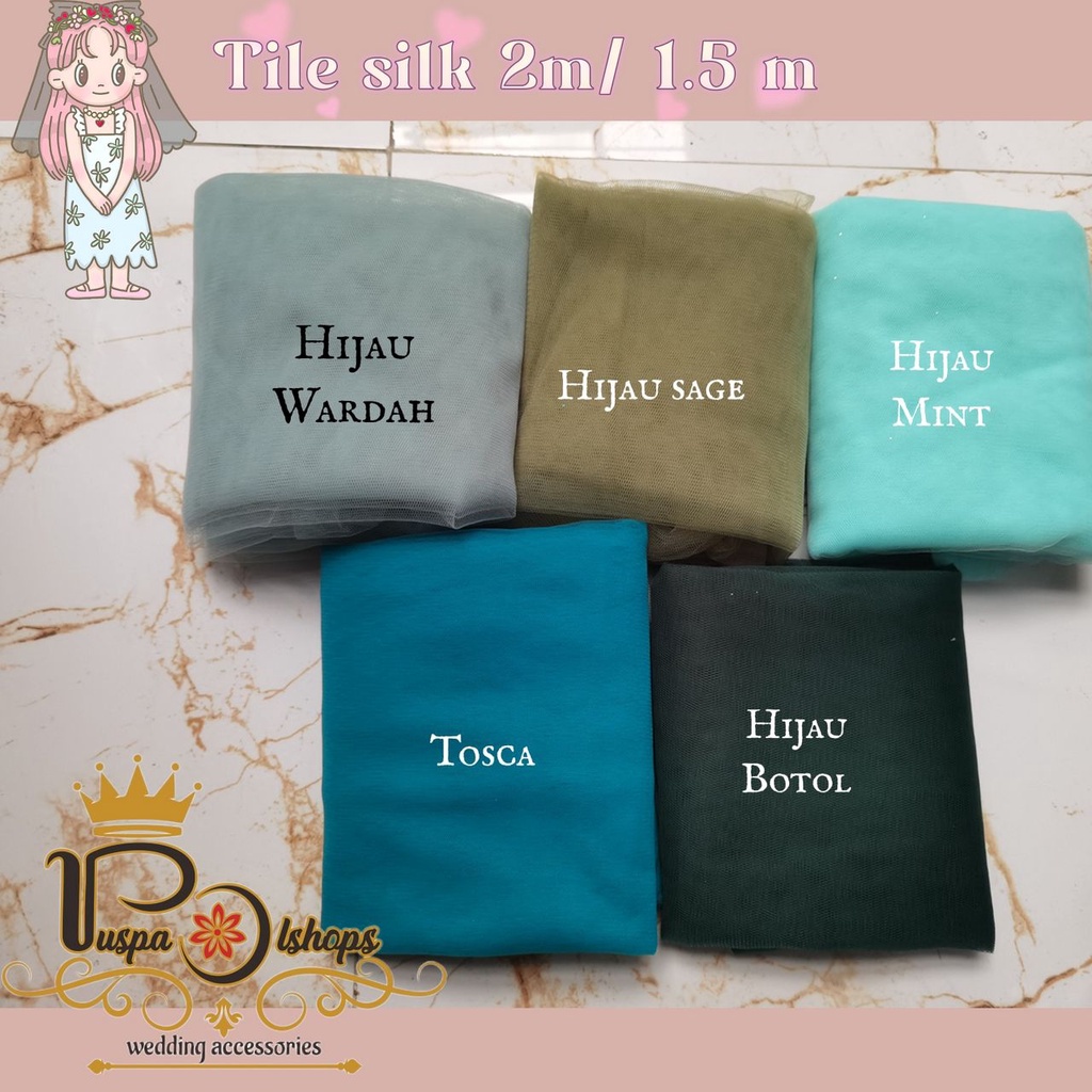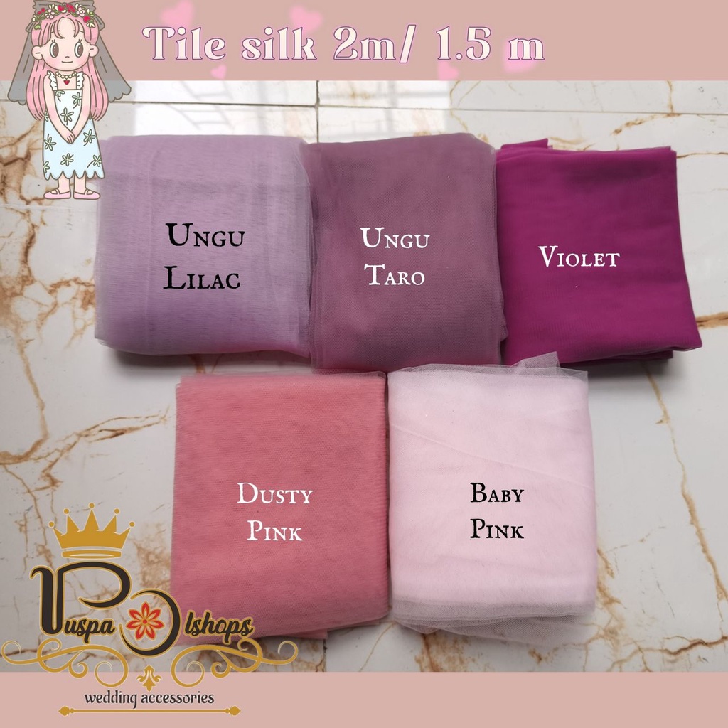 Tile silk ini merupakan tile lembut dan halus tanpa jahitan. Walaupun tanpa jahitan kain tidak akan mberodol. Kerapatan benangnya bagus dan sangat halus. Kami menjualnya sudah potongan dengan ukuran 200cmx150cm dan 150cmX150 cm Untuk warna terkadang 1-2 tingkat lebih cerah/1-2 tingkat lebih gelap tergantung stok dipasaran.khusus mocca, gold, rose gold, dusty pink, cream,lilac, taro, hubungi admin kembali jika ingin mencocokkan dengan baju karena ada beberapa warna yang sedikit berbeda dengan chart warna. untuk pilihan warna ungu terong, tosca violet dan coklat tua silahkan catat pilihan warna saat checkout, tidak bisa dibuat per varian karena keterbatasan kolom.