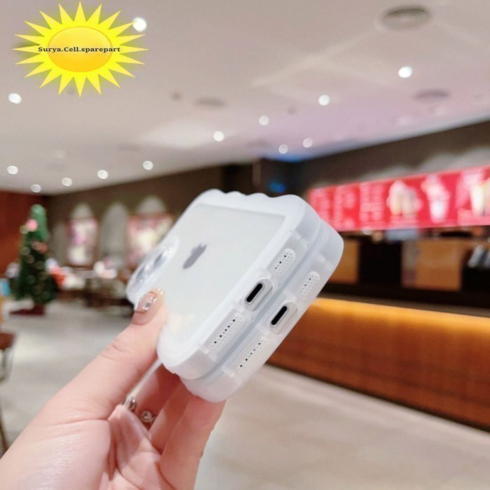 bahan dasar silikon dengan model gelombang bahan clear glosy dan pinggiran warna bening doff bahan lentur tidak mudah menguning(yellowing) dilengkapi dengan pelindung kamera yang membantu melindungi handphone secara menyeluruh dengan model gelombang yang membuat cantik tampilan handphone