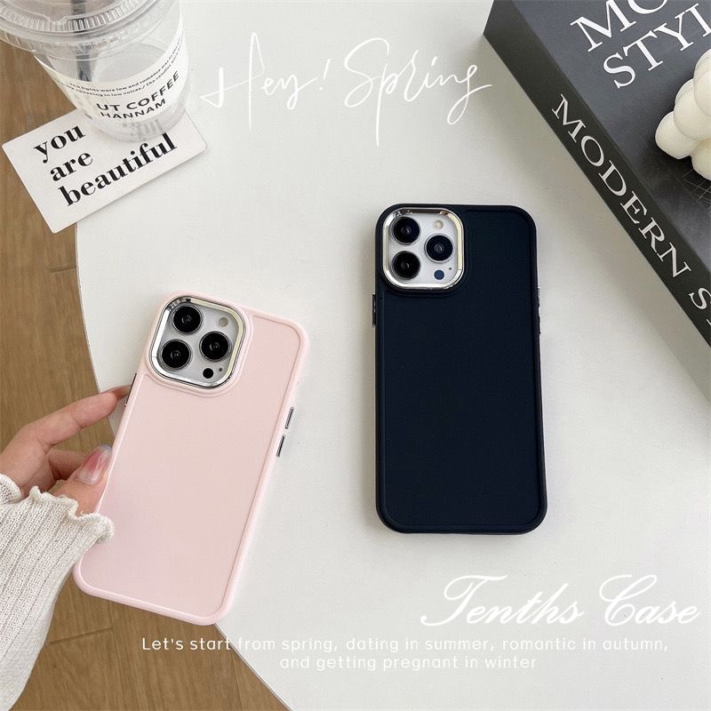Handphone & Aksesoris > Casing & Skin > Casing & Skin Handphone > Softcase iphone Untuk Iphone14 13 12 11 Pro Max X Xr Xs Max7 8 Plus Gaya Warna Solid Cincin Lensa Metal