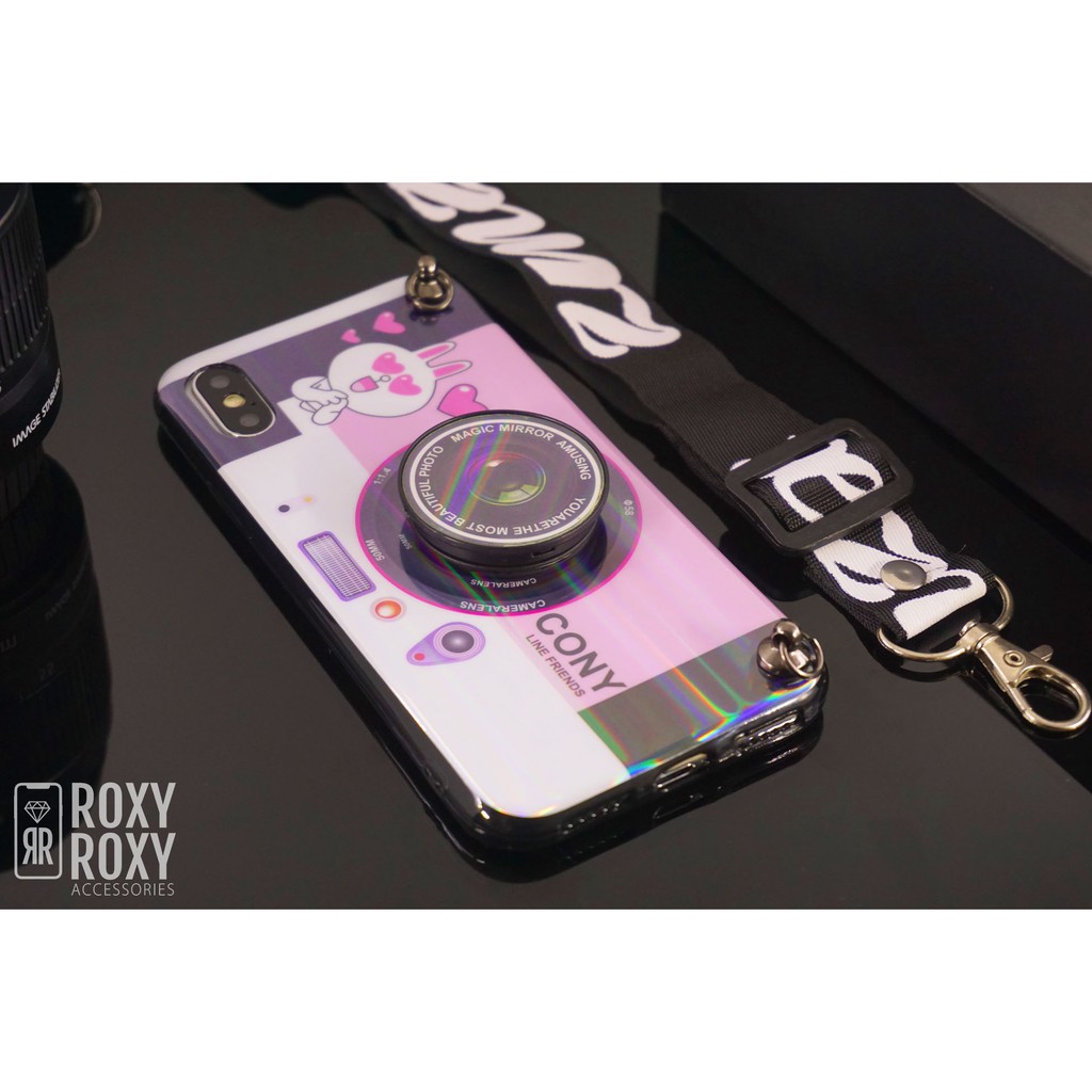 Bonus 1 Holder Popsocket dengan motif lensa kamera yang memiliki tekstur glossy yang sama dengan casenya