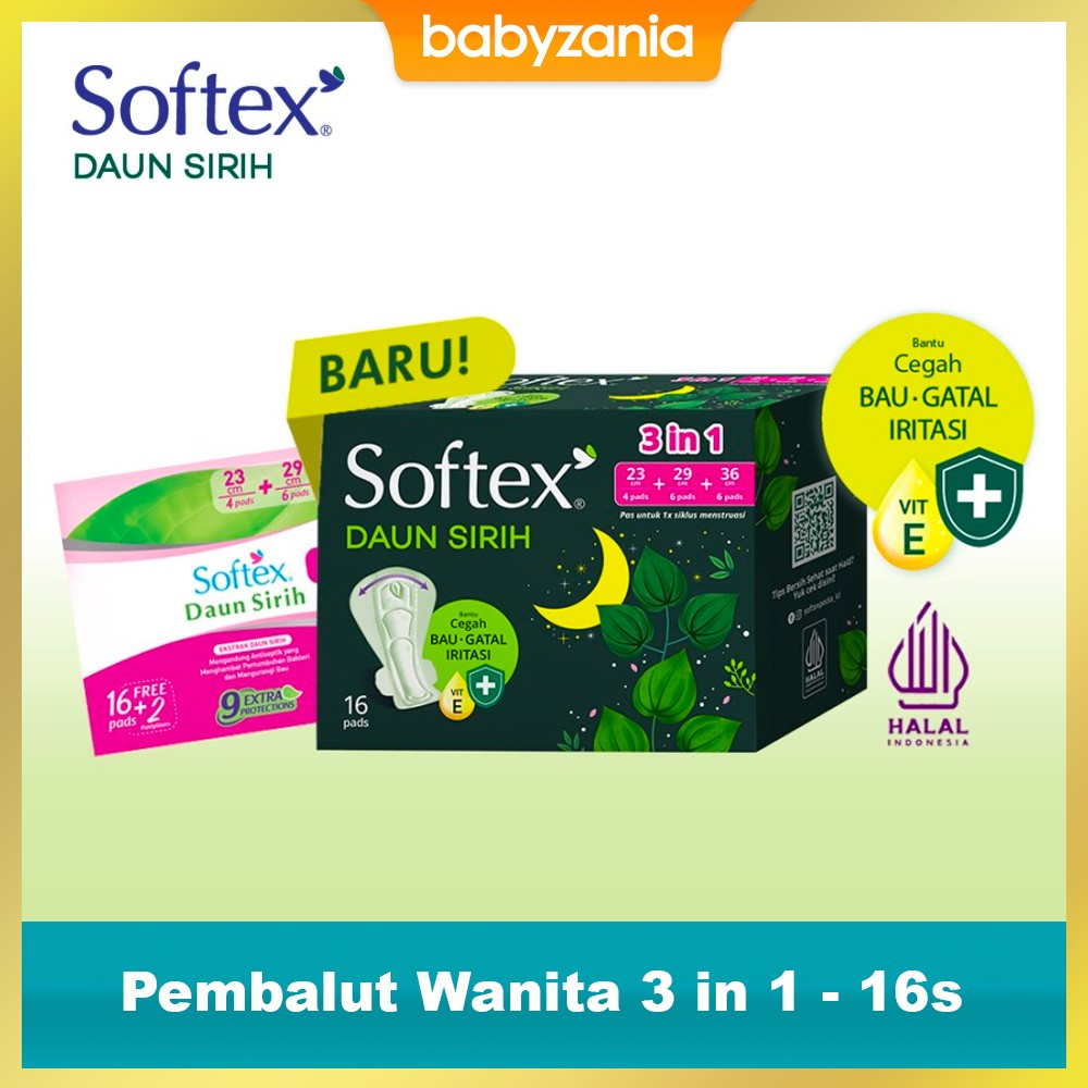 Softex Daun Sirih Pembalut Wanita 3 in 1 - 16 sSoftex Daun Sirih Pembalut Wanita 3 in 1 - 16 s