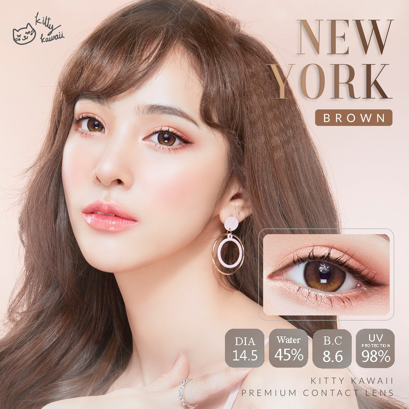 Detail Softlens Kitty Kawaii New York Brown / Coklat Normal Minus Beda Minus