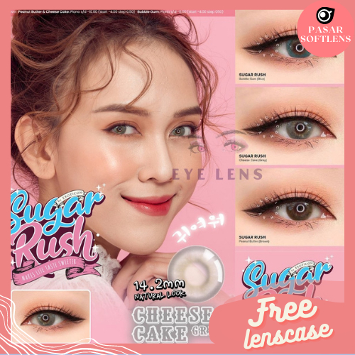 Detail SOFTLENS X2 SUGAR RUSH NORMAL & MINUS ( -0.50 SD -4.00 ) FREE LENSCASE DIA 14.2MM BY EXOTICON / GREY BROWN BLUE / Softlen Soflen Soflens