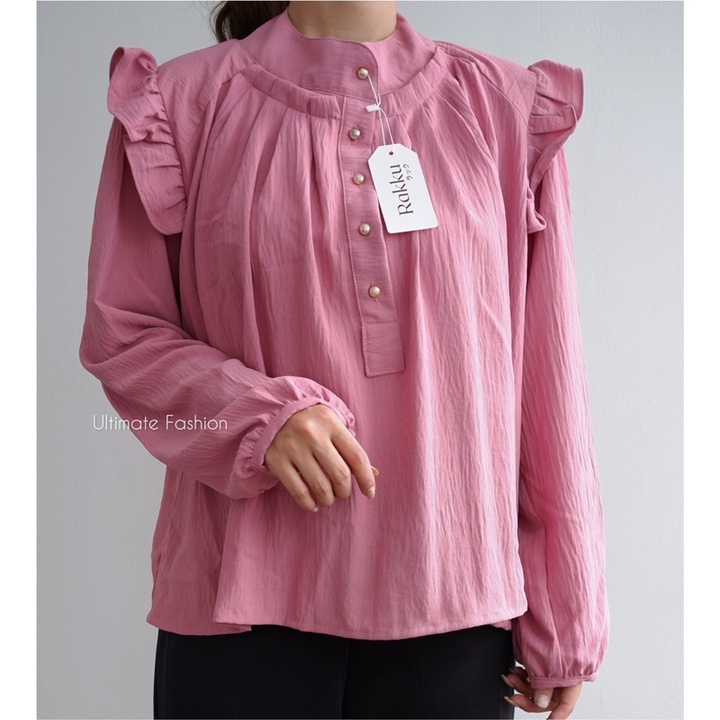 Sohee Blouse Import - Atasan Crinkle Premium - Top Wanita Busui Rakku - Kancing Gold Hidup di Badan dan Lengan - Bahan Crinkle Airflow Import