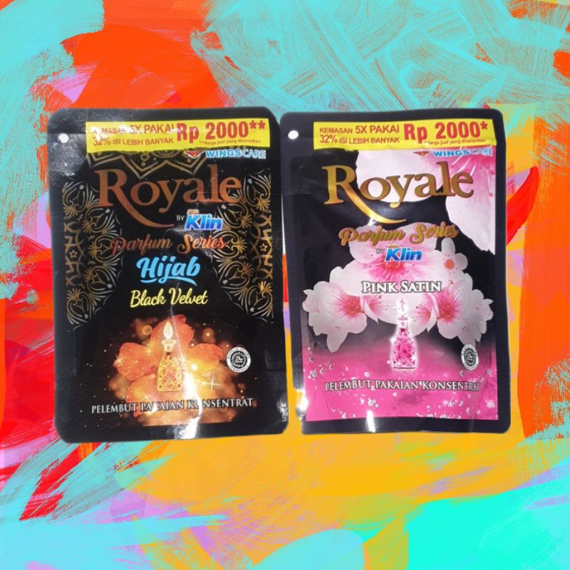 Pelembut dan pewangi pakaian. Merk : Royale Netto : 58ml Kemasan : pouch Harga : 1pouch Wangi : - hijab black velvet - pink satin