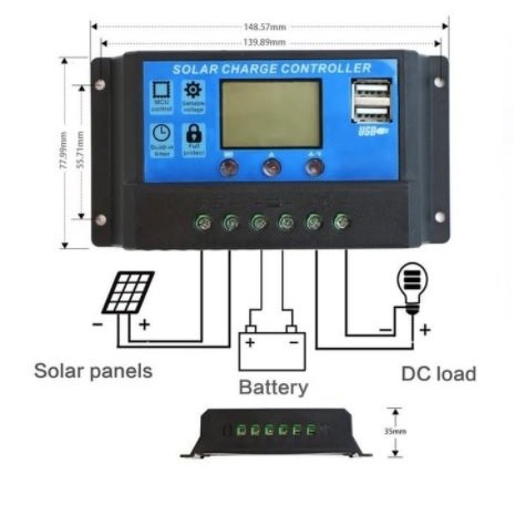 Fitur Produk: 1 Tampilan LCD grapik simbol 2 Pengoperasian yang mudah 3 Otomatis mendeteksi tegangan yang dipakai 12V/24V 4 Intelligent PWM charge mode 5 Tegangan charge-discharge dapat diatur sesuai jenis aki 6 Settable operating modes of loads 7 Bisa dipilih jenis aki yang dipakai, aki jadi awet 8 Proteksi Aki dari temperatur yang berlebih 9 Proteksi Aki Tegangan terendah, memperpanjang umur aki 10 Dual USB 5V output bisa Charge Tablet dan HP.