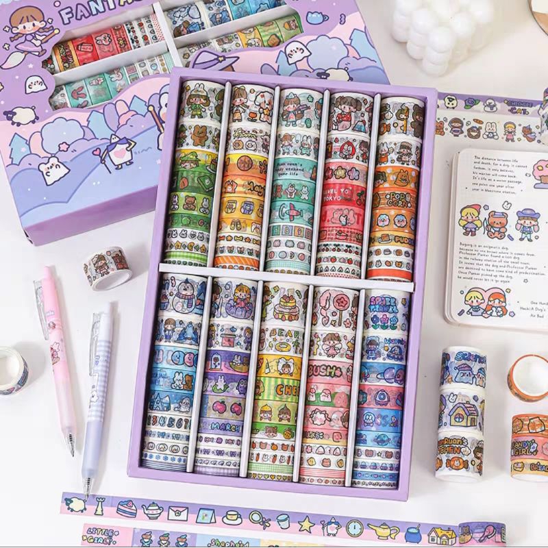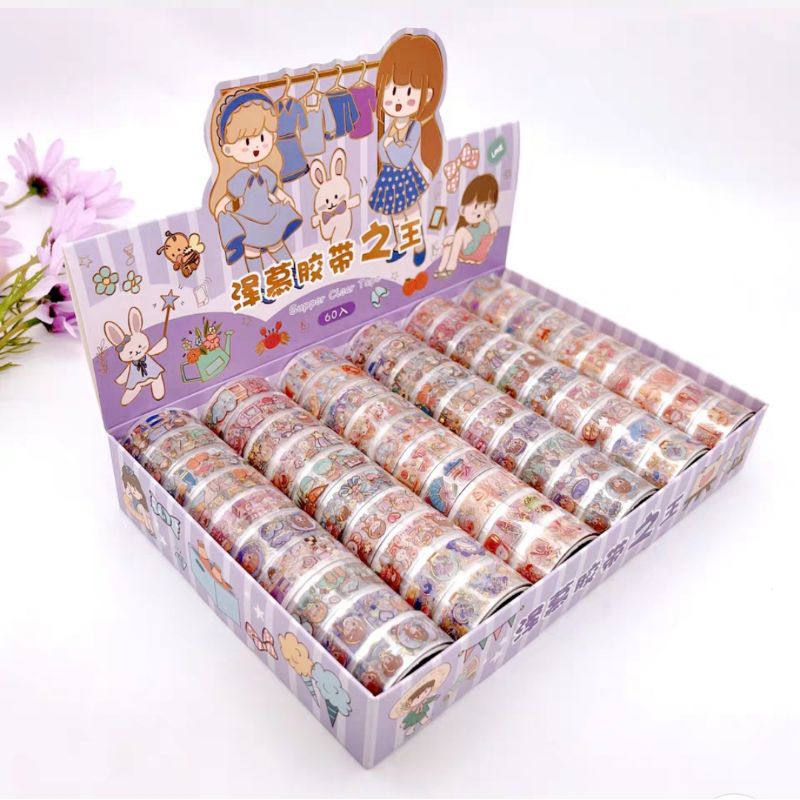 Buku & Alat Tulis > Perlengkapan Sekolah & Kantor > Tali & Selotip > Solatip Momo Korea Deco Tape Karakter Kartun Cantik/ Stiker Solatip Korea Transparan Motif