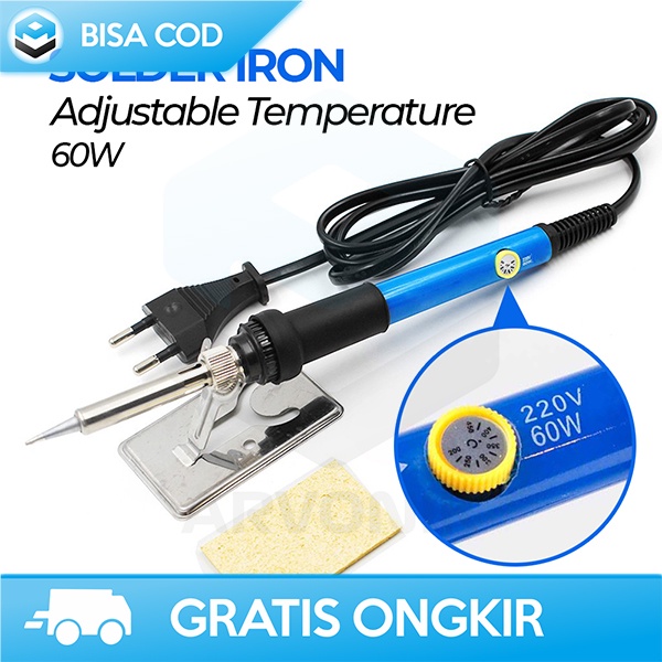 1 x PROSTOEMER Solder Iron Adjustable Temperature 60W - AMH205 1 x Dudukan Solder 1 x Spons Pembersih Mata Solder