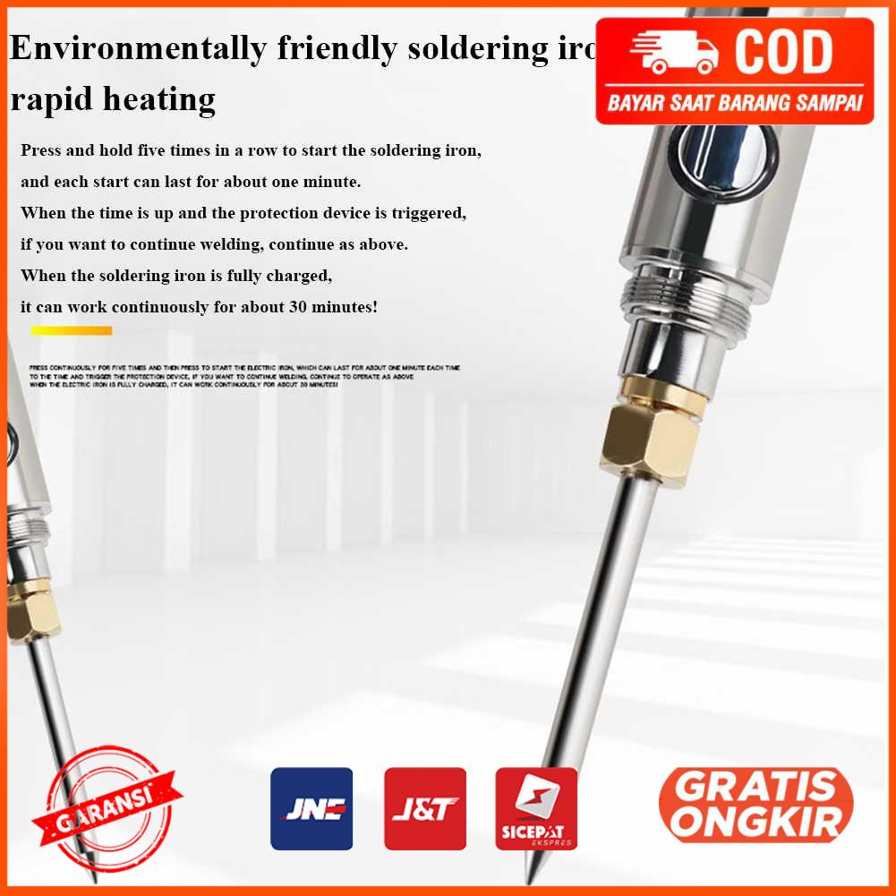 Solder ini mengusung konsep portable sehinggaAndatidak perlu lagi mencolokkan kabel listrik saat digunakan. Dengan begitu proses penyolderan dapat lebih leluasa tanpa terganggu lagi dengan kabel listrik yang dapat membatasi pergerakan Anda. Solder ini menggunakan baterai isi ulang lithium 1100 mAh sehingga dapat beroperasi hingga durasi 30 menit non stop. Fitur Desain Portable Solder ini hadir dengan ukuran bodikecil dan minimalis. Menggunakan baterai isi ulang sebagai tenaga utama sehingga tidak perlu mencolok kabel ke sumber listrik. Fitur ini membuat solder ini sangat praktis untuk digunakan.