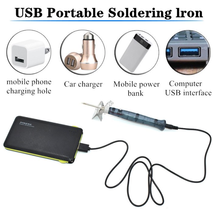 Detail Solder Tangan Portable Power Via USB Soldering Iron 5 Volt 8w /9w