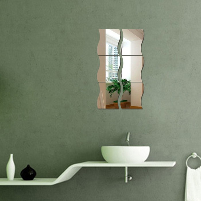 Barang-barang yang Anda dapat dalam kotak produk: 6 x SOLEDI Sticker Dekorasi Dinding Wave Mirror Acrylic - SL07