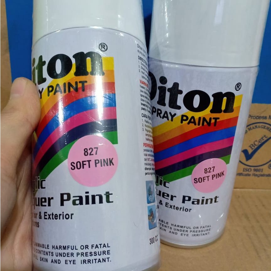 Detail SOLID COLOURS DITON Spray Paint Acrylic Lacquer Paint Pilox Pilok Cat Semprot - 827 SOFT PINK / MERAH MUDA / PINK MUDA (300cc / 300ml)