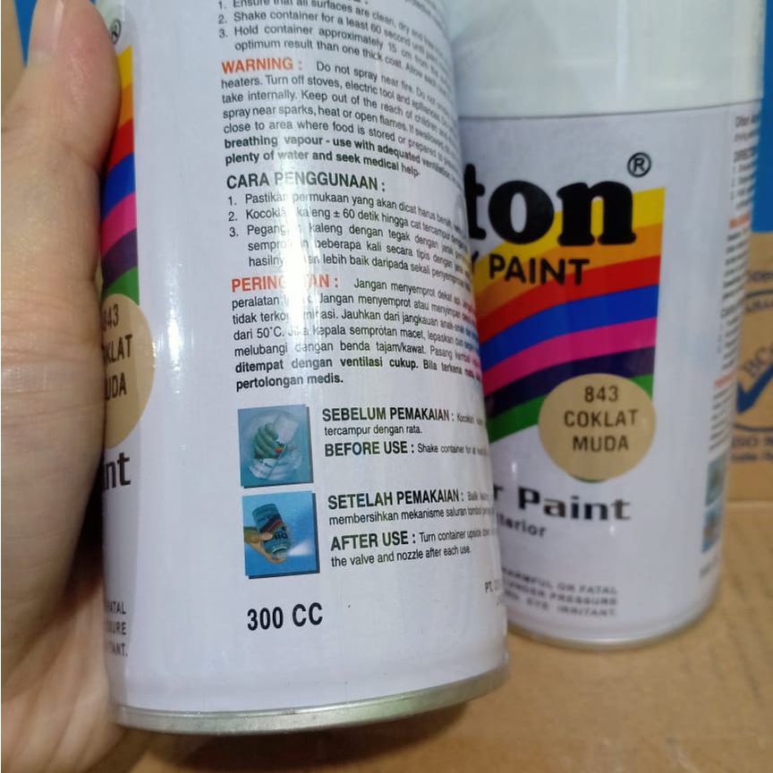 Otomotif > Oli & Pelumas Kendaraan > Oli & Pelumas Kendaraan Lainnya > SOLID COLOURS DITON Spray Paint Acrylic Lacquer Paint Pilox Pilok Cat Semprot - 843 COKLAT MUDA / BROWN / COKELAT MUDA (300cc / 300ml)