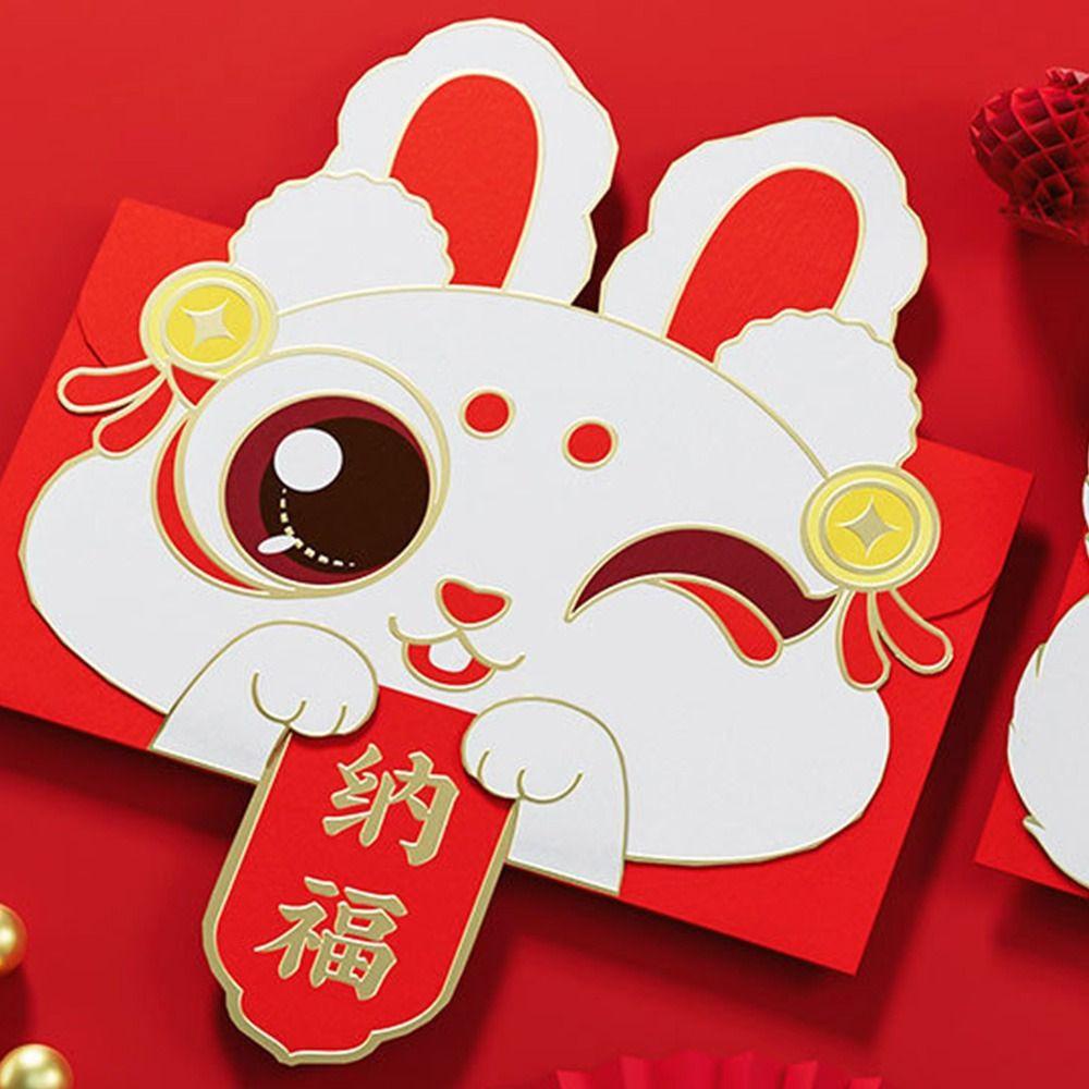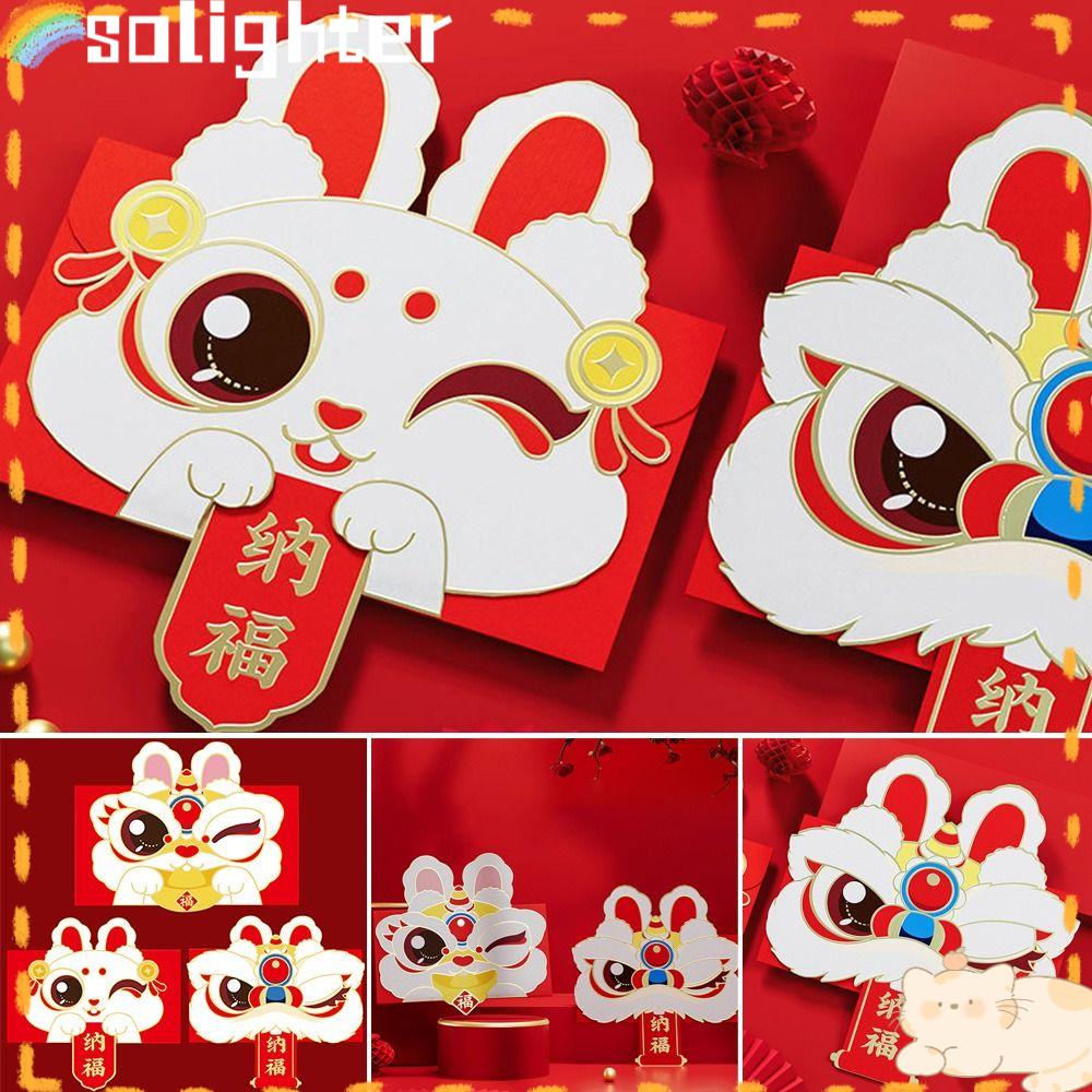Solighter 12pcs Amplop Merah Pesta Tahun Baru Amplop Tahun Kelinci Festival Musim Semi Hongbao