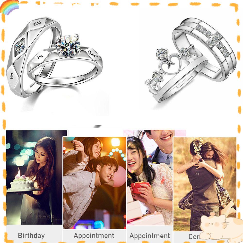 Detail Solighter 1pasang Cincin Couple Hari Valentine King Queen Adjustable Berbentuk Hati