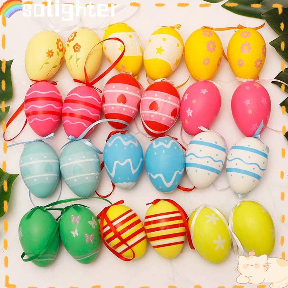 Detail Solighter 24PCS Telur Paskah Plastik DIY Kerajinan Ulang Tahun Hiasan Gantung