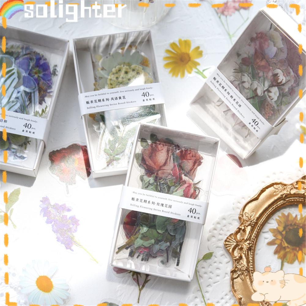 Detail Solighter 40pcs/box Stiker Bunga Dekorasi Jurnal Diary Vintage