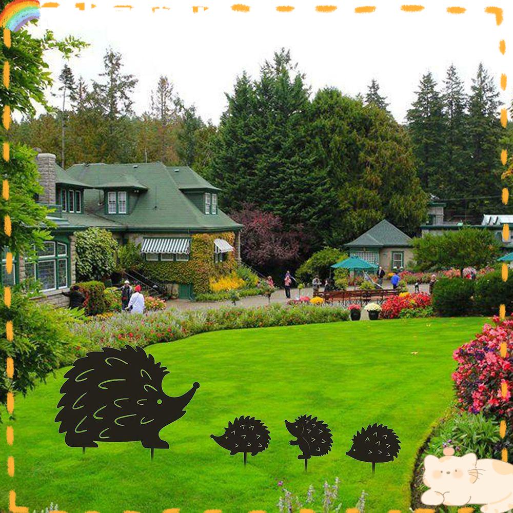 Dekorasi Hedgehog 1 Set (4PCS) 4PCS) Dekorasi Landak Taruhan Siluet Plug-in Pos Berdiri Patung Hedgehog Ornamen Lanskap Patung Luar Ruangan Dekorasi Untuk Halaman Halaman Besi Seni Kreatif