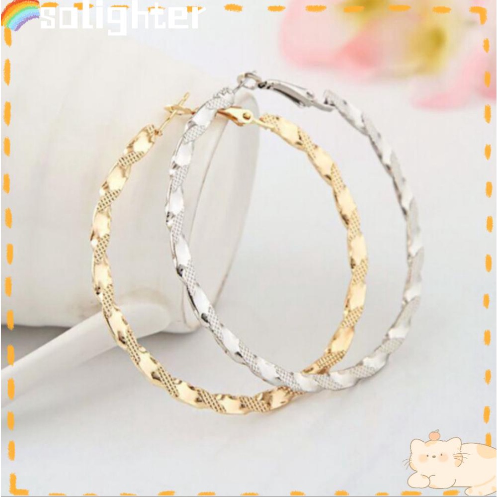 Detail Solighter Anting Hoop Kepribadian Wanita Berlapis Emas Perak Disepuh Tren Perhiasan