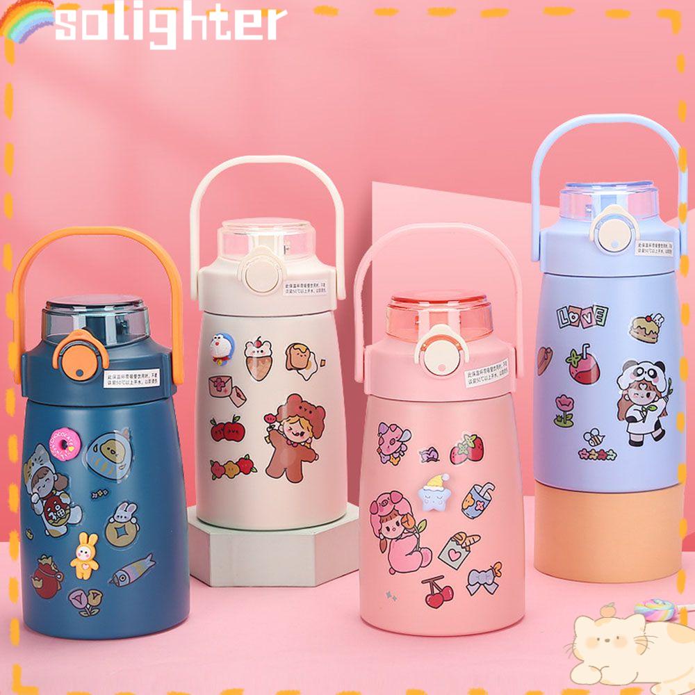 2. Due to the difference between different monito, please undetand that the picture may not reflect the actual color of the item. Water Bottles Bottle Vacuum Flasks Drinkware Thermocup Mug Cup Insulation Barrel Gifts for Girls Leak Proof Sticker Straps Travel Double Outdoor Sport Cartoon 750ml