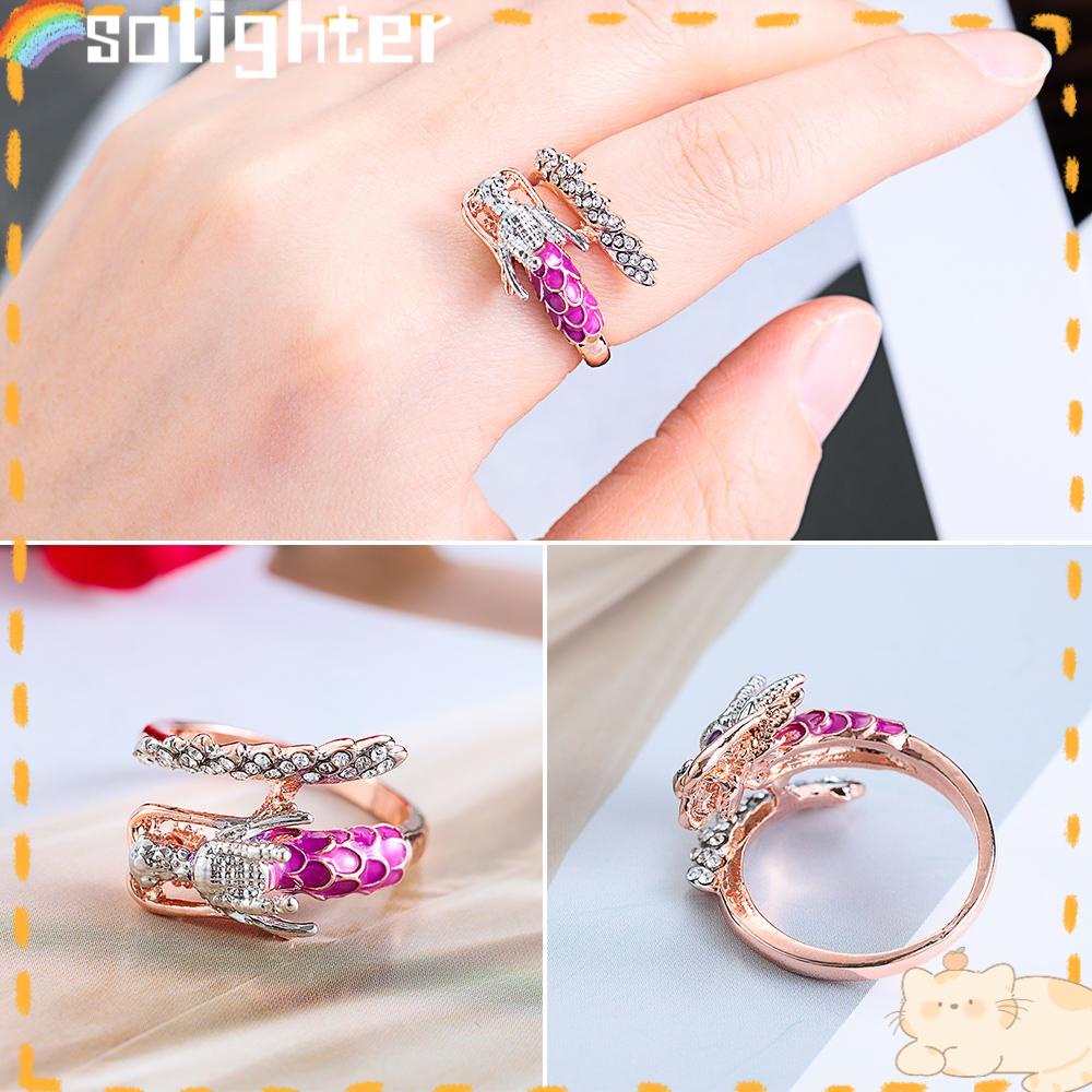 Detail Solighter Cincin Naga Perhiasan Hewan Pernikahan Boho Kristal Zircon