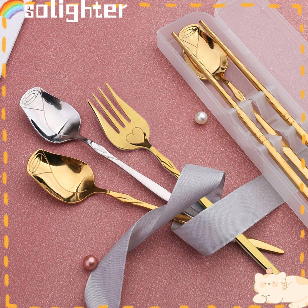 Detail SOLIGHTER Cutlery Set Portable Fruit Fork Tableware Set Spoon Fork Chopsticks Set