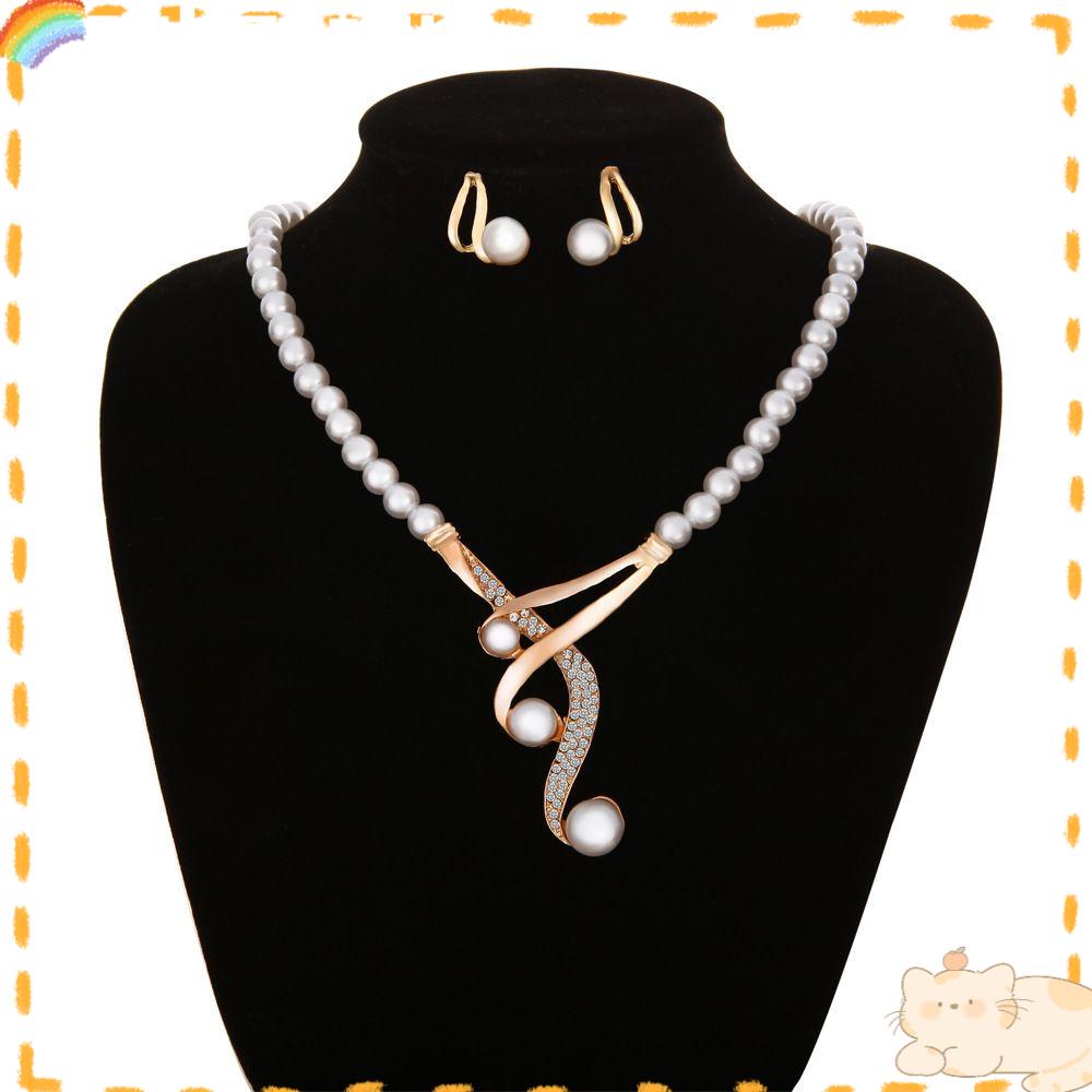 2, Perkenankan sedikit (±2cm) penyimpangan pengukuran manual untuk data. Kalung Mutiara Set Perhiasan Set Kalung Rantai Anting-Anting Rantai Emas Simulasi Mutiara Hadiah Pernikahan Gadis Vintage