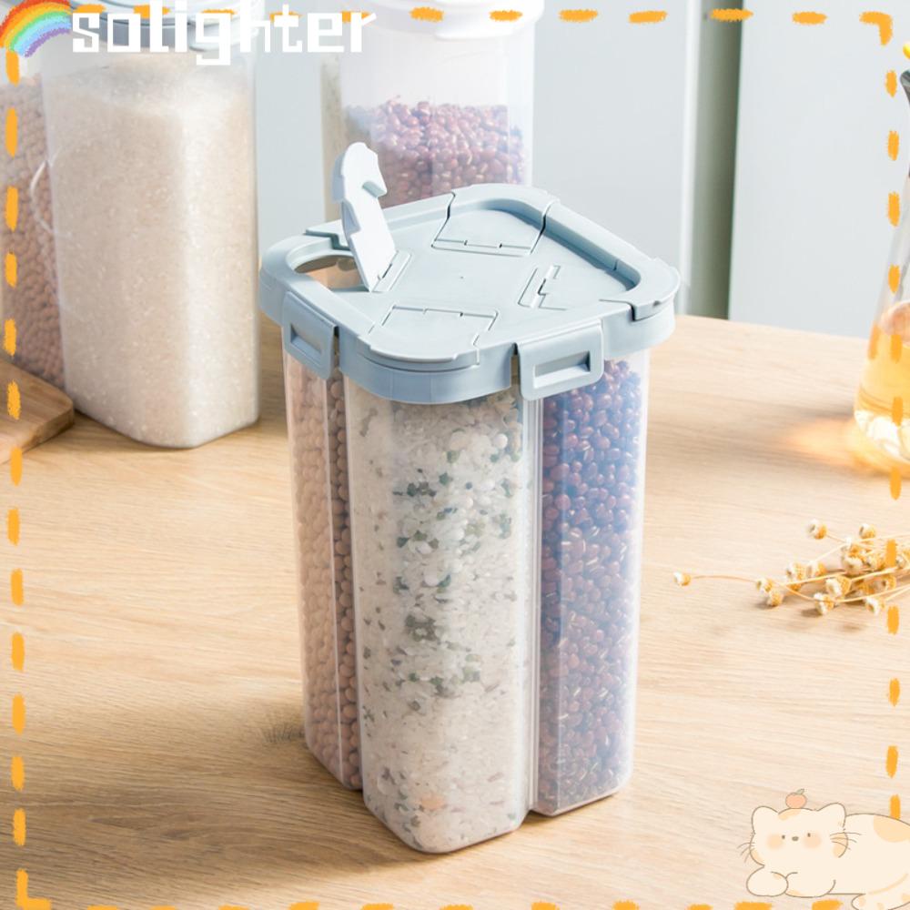 ????? Square Sealed Jar Rice Nut Storage Tank Food Canister Grade Botol Grain Snack Storage Box Jar Dengan Tutup Wadah Makanan Botol Bumbu Rumah Tangga Transparan Stackable Kitchen Tool 2 4 Grids