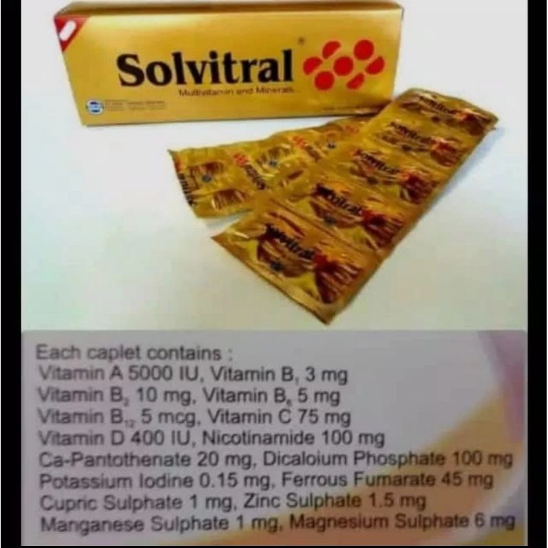 Kegunaan : Solvitral digunakan untuk memenuhi kebutuhan vitamin dan mineral pada tubuh, membantu menjaga kesehatan tulang dan sendi, membantu menjaga kesehatan mata.