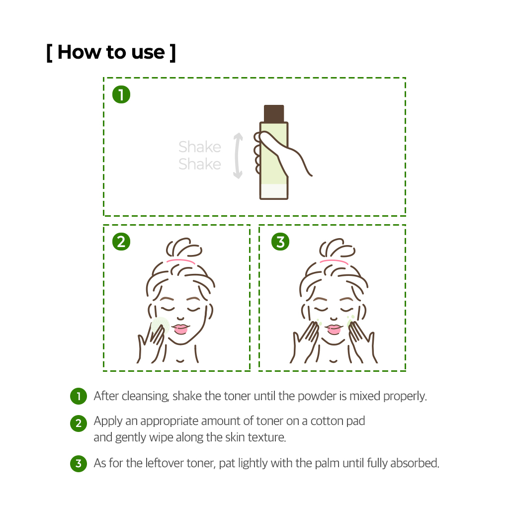 ✅ Oleskan pada kapas dan aplikasikan ke wajah! Perawatan pori intensif Rendam kapas dengan toner dan aplikasikan ke wajah. Energi dari air dan bubuk Matcha dikirim ke lapisan dalam kulit untuk membantu perawatan pori-pori yang intensif.