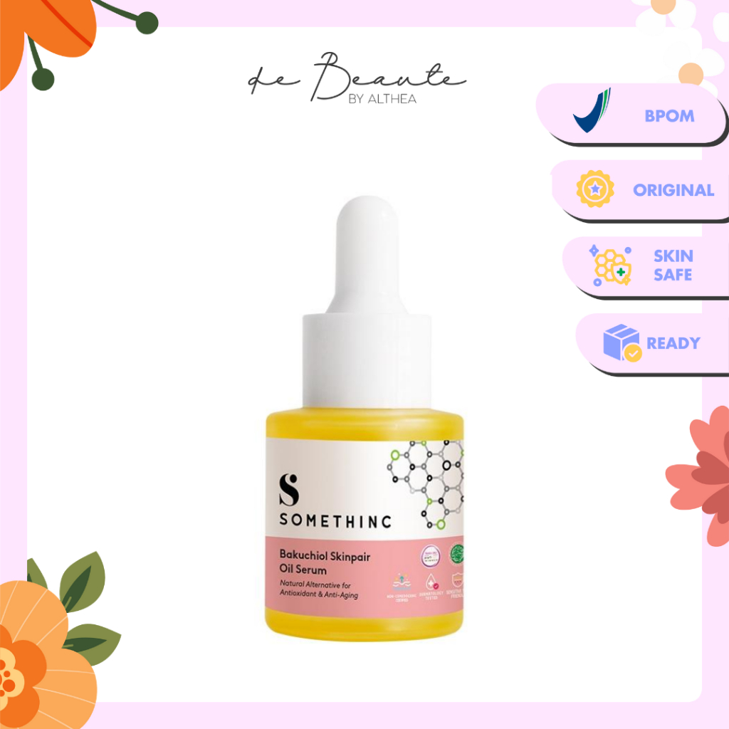 MANFAAT SOMETHINC BAKUCHIOL SKINPAIR SERUM: - Berbasis tumbuhan + Alternatif Alami untuk Retinol (Ya! Wanita Hamil & Remaja dapat menggunakan produk ini juga!) - Sifat Antioksidan & Anti Penuaan yang Kuat - Anti-iflamatory, Mengurangi Jerawat (Shoutout to Acne Fighter) - Photostable (aman digunakan di pagi hari) - Memperbaiki Tekstur & Elastisitas Kulit - Efek Samping lebih sedikit dari Retinol - Merangsang produksi Kolagen & Pergantian sel kulit Anda