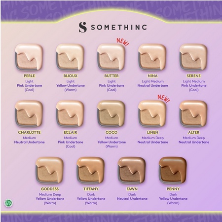 Shades (No BPOM): - PERLE (NA18200300322) : Light – Pink Undertone (Cool) - BIJOUX (NA18200300320): Light – Yellow Undertone (Warm) - NINA (NA18200300323): Light-Medium - Neutral Undertone - SERENE (NA18190305712): Light Medium - Pink Undertone (Cool) - CHARLOTTE (NA18190305716): Medium - Neutral Undertone - ÉCLAIR (NA18200300321): Medium - Pink Undertone (Cool) - COCO (NA18190305713): Medium - Yellow Undertone (Warm) - ALTER (NA18200300609): Medium Deep - Neutral Undertone - GODDESS (NA18190305717): Medium Deep - Yellow Undertone (Warm) - TIFFANY (NA18200300610): Dark - Yellow Undertone (Warm) - FAWN (NA18200300611): Dark - Neutral Undertone - PENNY (NA18200300612): Dark - Yellow Undertone (Warm)