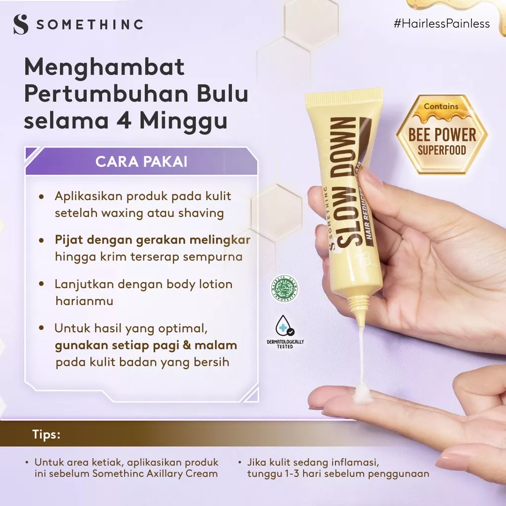 Treatment efektif untuk memperlambat pertumbuhan bulu sehingga mengurangi intensitas waxing/shaving. Diformulasikan dengan Advanced Liposome Encapsulated Larrea yang mengurangi pertumbuhan bulu, kemerahan, & mencegah ingrown hair. Dilengkapi dengan Trehalose & Manuka Honey yang menutrisi & melembabkan kulit. Cepat menyerap & tidak lengket, sehingga nyaman digunakan pada area kulit yang baru di wax, cukur, atau setelah penggunaan krim depilatory. Gunakan setiap hari untuk kulit lebih halus, warna kulit cerah merata, & bebas bulu!