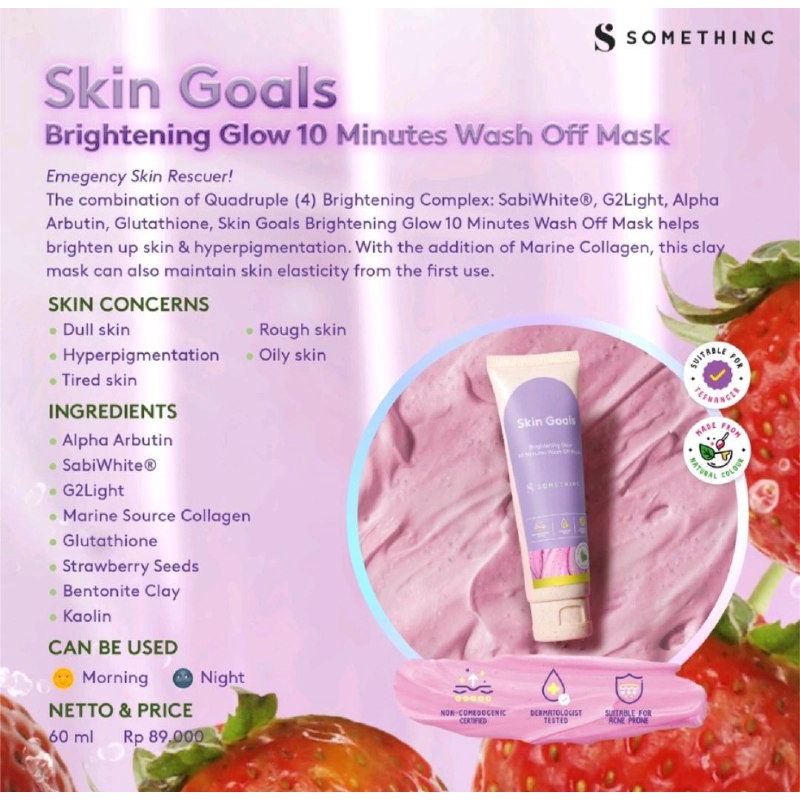 🍓 Skin Goals Brightening Glow 10 Minutes Wash Off Mask 60 gr + FREE SPATULA