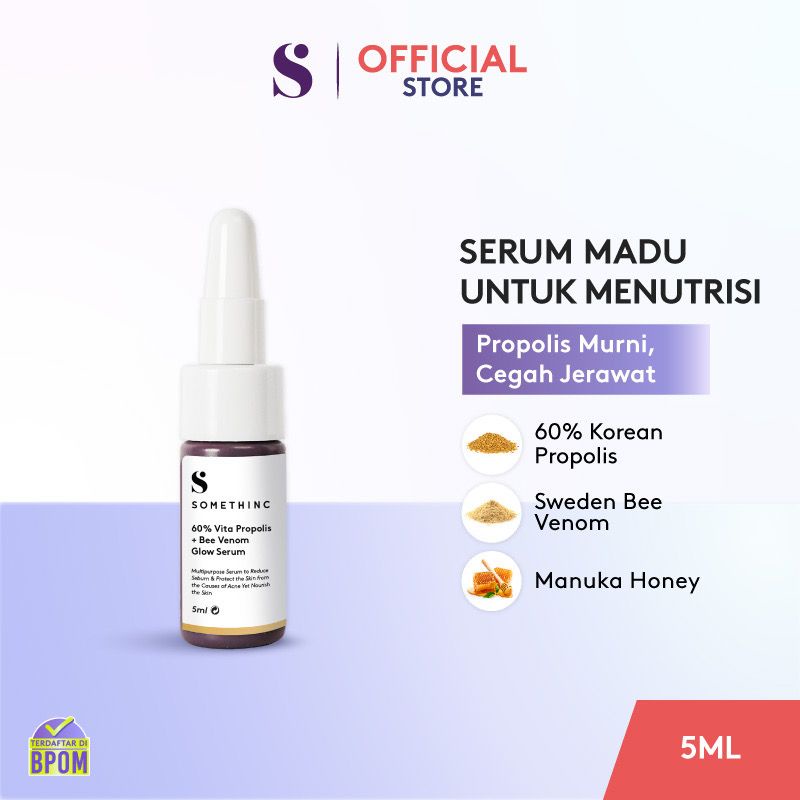 60% Vita Propolis + Bee Venom Glow Serum Kombinasi natural 60% Vita Propolis & Manuka Honey yang sejak lama telah menjadi andalan dalam mengatasi jerawat, bruntusan, serta mengurangi sebum berlebih. Diperkaya dengan Bee Venom yang memiliki sifat anti-bakteri & anti-inflamasi, serum ini potent untuk menutrisi kulit secara intensif, menjadikan kulit sehat berkilau, serta mencegah penuaan dini.
