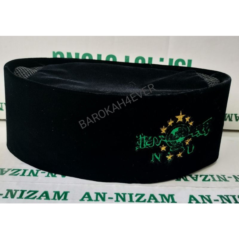 Songkok nasional AN NIZAM AC bordir NU bludru halus Tinggi 9 cm Ada AC Ada bordir tulisan NU Ukuran mulai 1-10