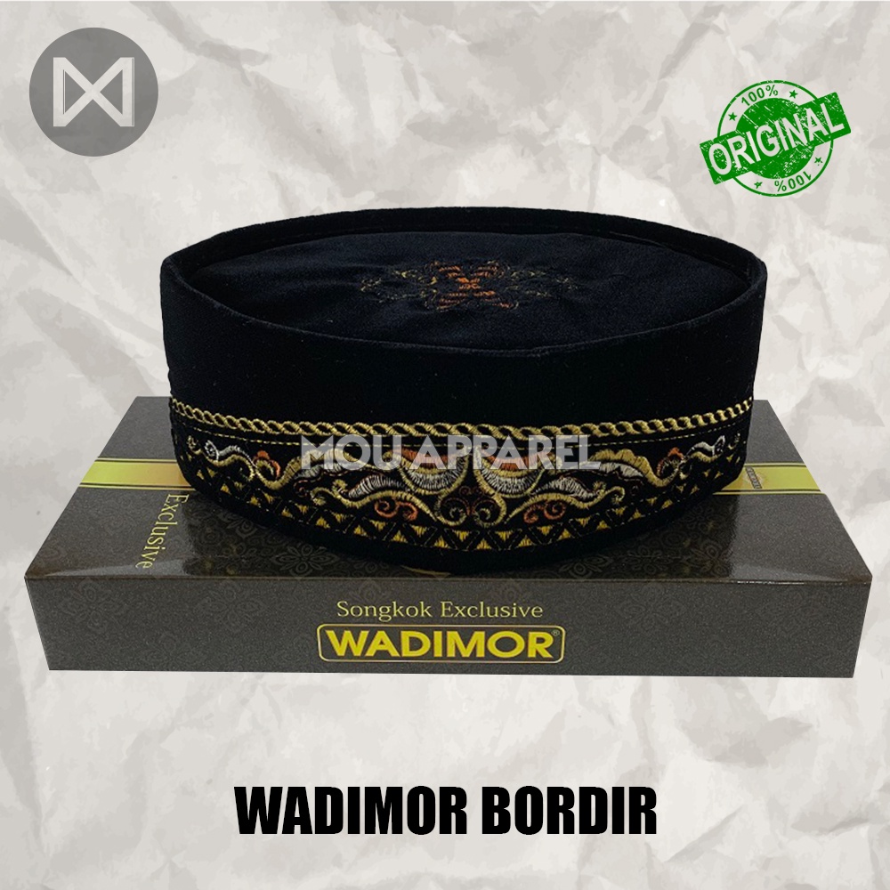 DESKRIPSI PRODUK: -Songkok Executive WADIMOR Bordir -Jenis beludru halus -Dasar Hitam, anti air -nyaman digunakan